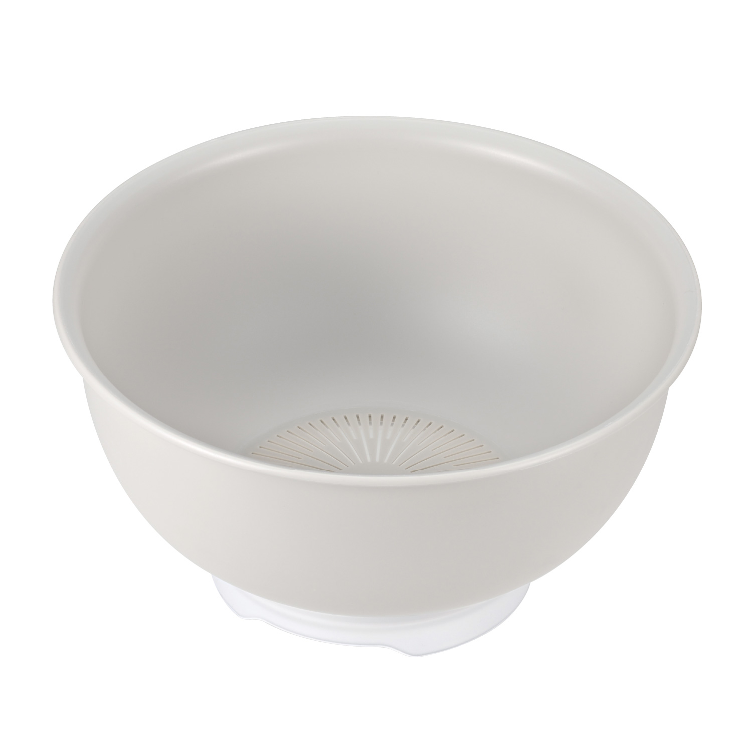 “ひと押し”で底から排水! らくらくお米が研げる、お米研ぎ用ボウルができました! 普段お米を研ぐ時、米粒がこぼれないように手で押さえながら水の入った重いボウルを傾けて…という作業を何度も繰り返します。この作業がなくなれば、もっとお米とぎは簡単になるのでは?という思いで開発されたのが「こめコレ!いち押し米とぎボウル」です。 ボウルをシンクに置いてお米を研ぎ、ボウルの中心をグッ!と押すだけで、底からザバッ!と研ぎ汁が抜けます。お米研ぎが、ラク&快適&超スピーディ! 米粒が抜けにくく挟まりにくいスリット形状。 最大4合まで対応。 ■ブランド紹介 「CÓME COLLE(こめコレ!)」は、ごはんの時間をちょっと特別に、もっとあたたかく彩るお米まわりのアイデアツール・コレクションです。「コレ、欲しかった!」そんな声が聞こえてくるような、ちいさな発想をかたちにしました。 ■材質: 本体・栓/ポリプロピレン(耐熱温度100℃/耐冷温度−20℃) 台座/ポリエチレン(耐熱温度80℃/耐冷温度−20℃) パッキン/シリコーンゴム(耐熱温度150℃/耐冷温度−20℃) ■サイズ: 223×223×118mm 【PAT.】
