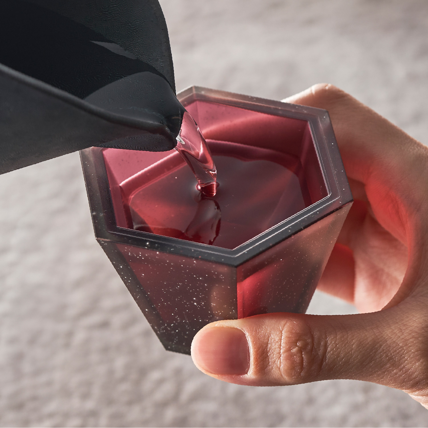 角器(KAKKI)は、曙産業の器の新ブランド。 第一弾は升のデザインからインスパイアされた 「六角お猪口」です。 哺乳瓶にも使われる安心の「トライタン」製。 ガラスのように透明なのに割れずに安心。 食器洗い乾燥機対応。 【トライタンについて】 卓越した強靭性、耐薬品性、耐熱性、高透明性を備えた樹脂。アルコールにも強く、BPA(ビスフェノールA)を含有せず安全性も高いため、乳児用品や医療部品にも使用されています。 ■サイズ: 68×78×51mm ■材質: 飽和ポリエステル樹脂(耐熱温度110℃/耐冷温度−20℃) ■容量:70ml(満水) 【PAT.P】