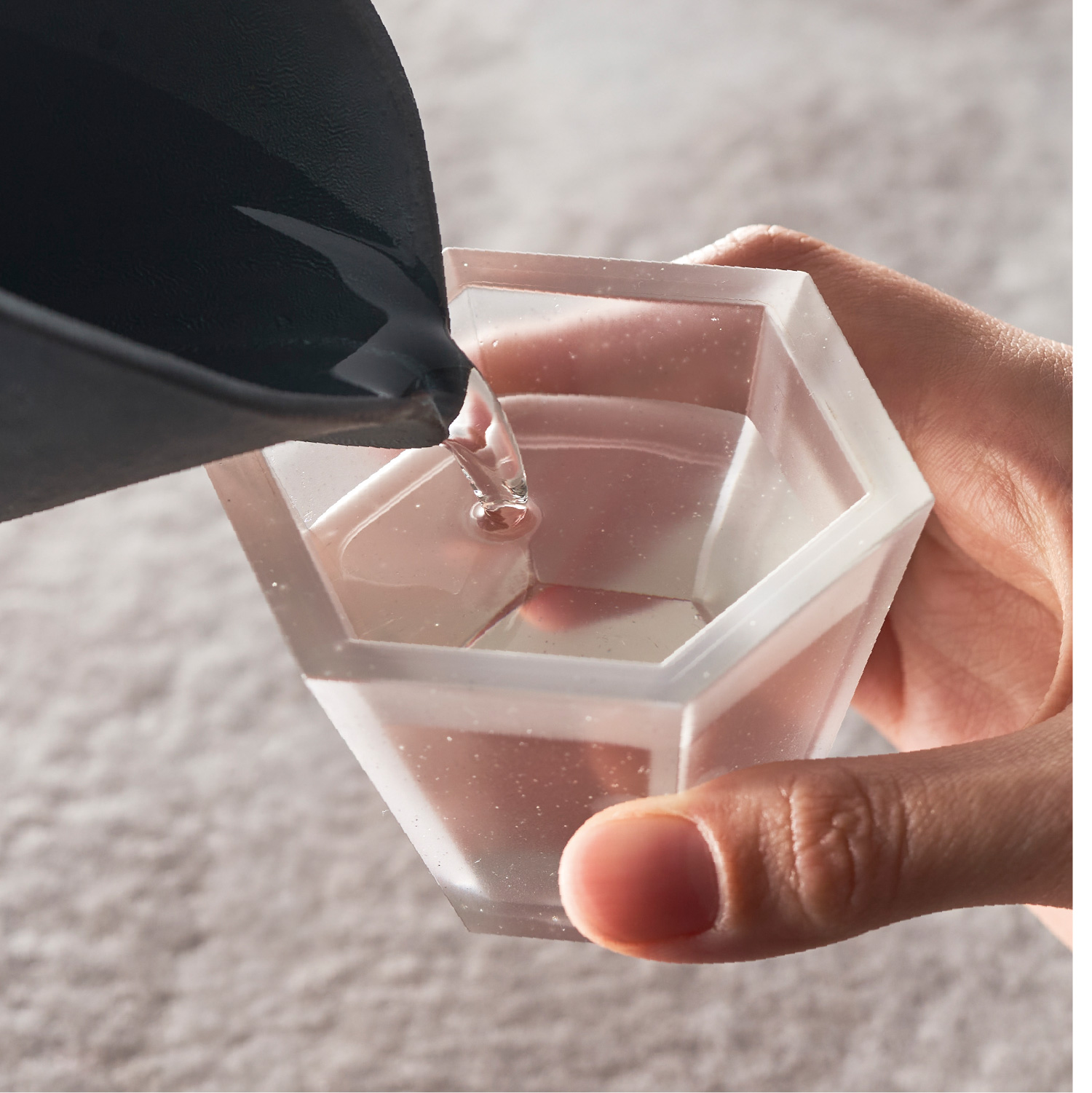 ガラスのように透明なのに割れずに安心。